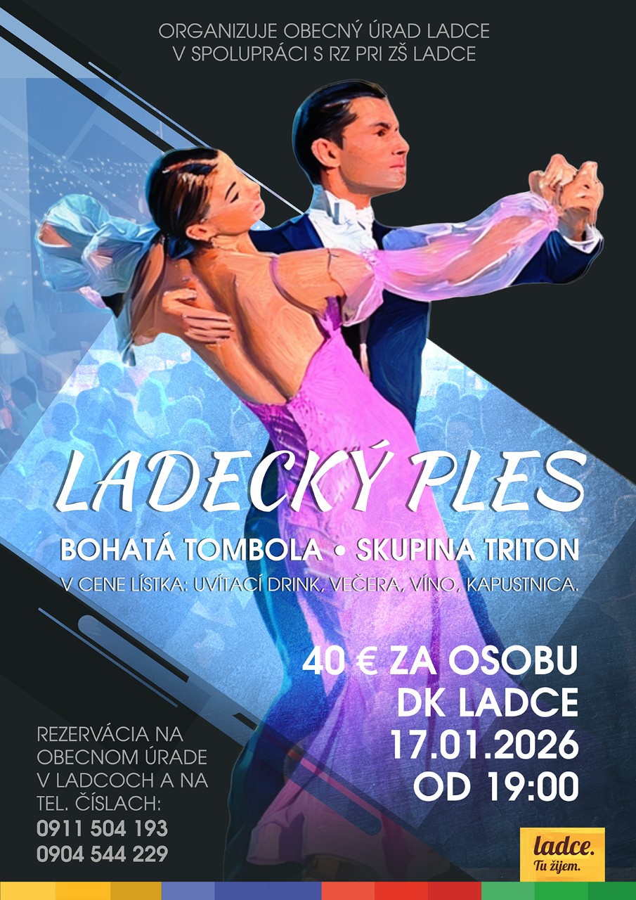 Srdečne Vás pozývame na Ladecký ples, ktorý sa bude konať 17.1.2026 v Dome kultúry Ladce so začiatkom o 19.00 hod.